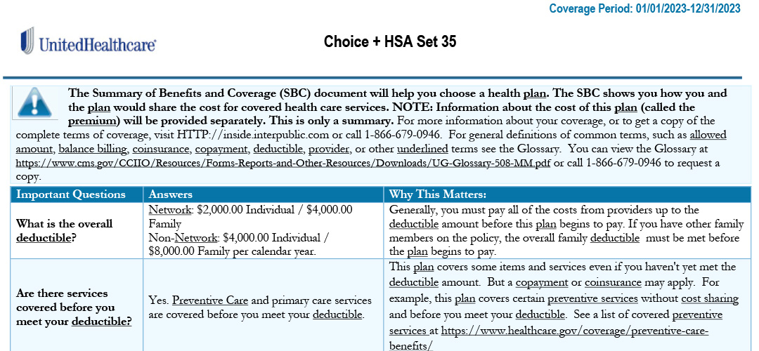 Summary of Benefits and Coverage (SBC): Choice + HSA HP Set 35