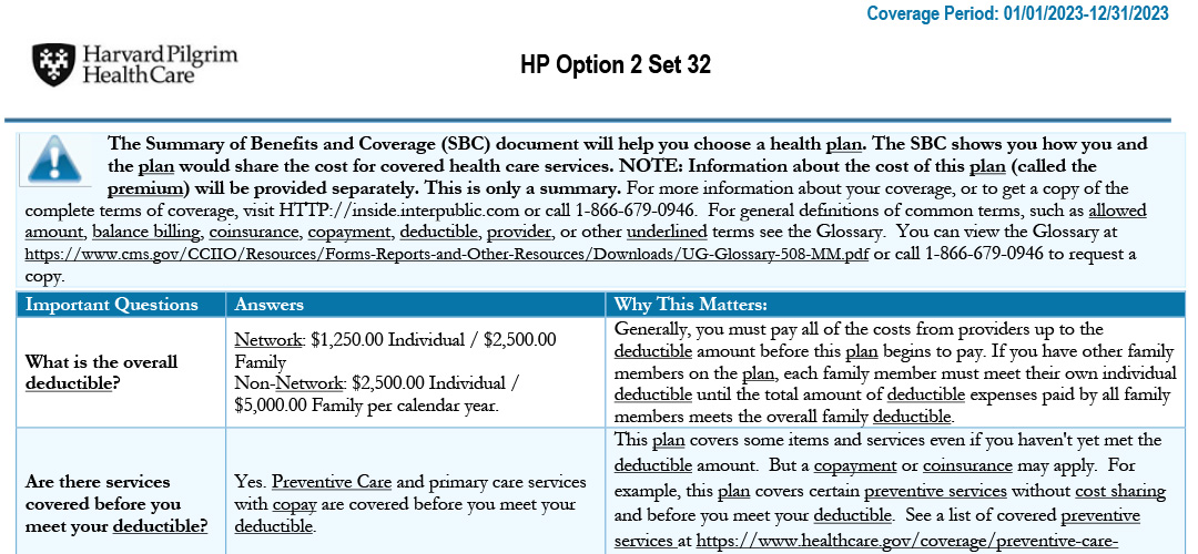Summary of Benefits and Coverage (SBC): HP Option 2 Set 32