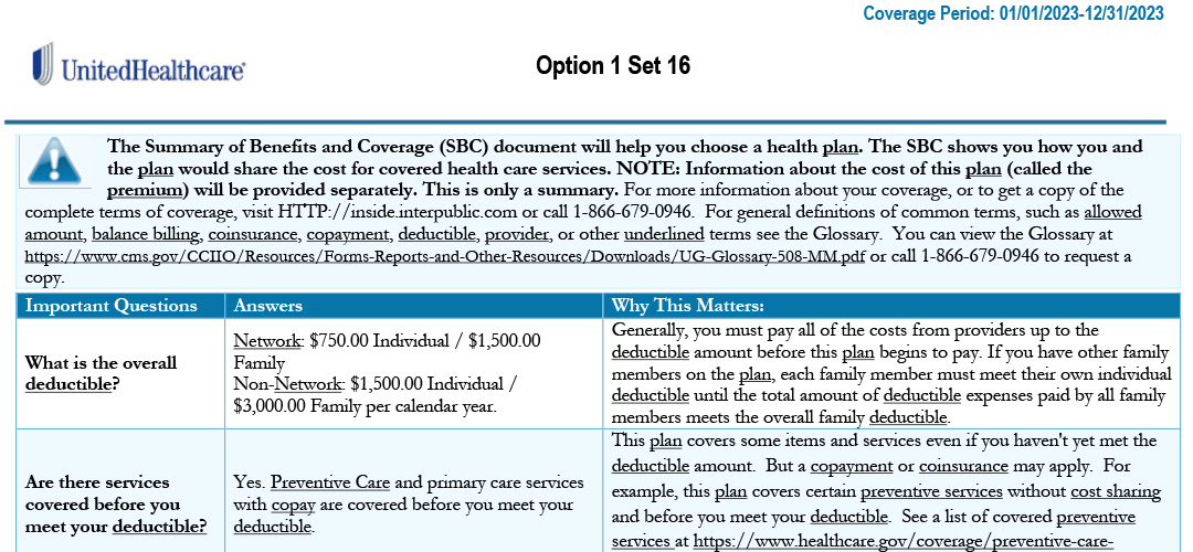 Summary of Benefits and Coverage (SBC): Option 1 Set 16