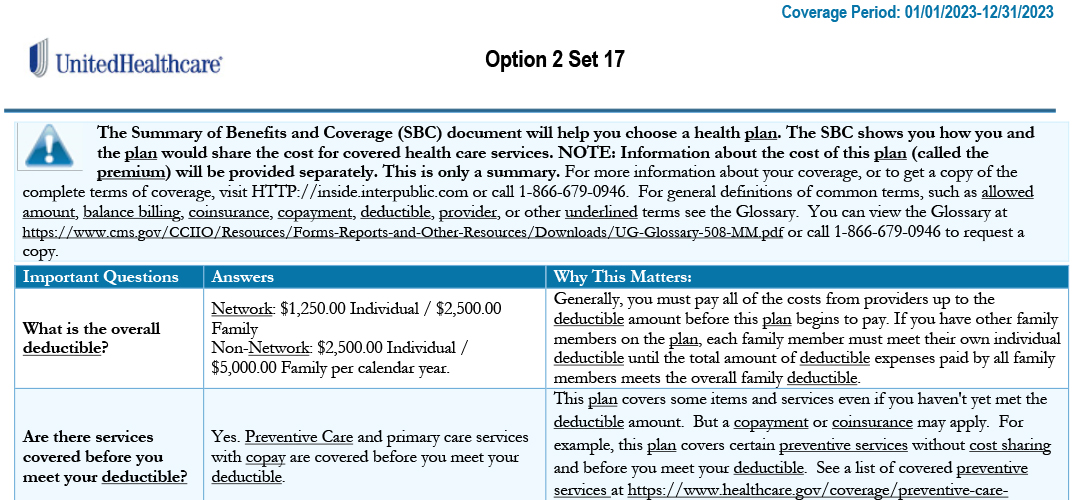 Summary of Benefits and Coverage (SBC): Option 2 Set 17